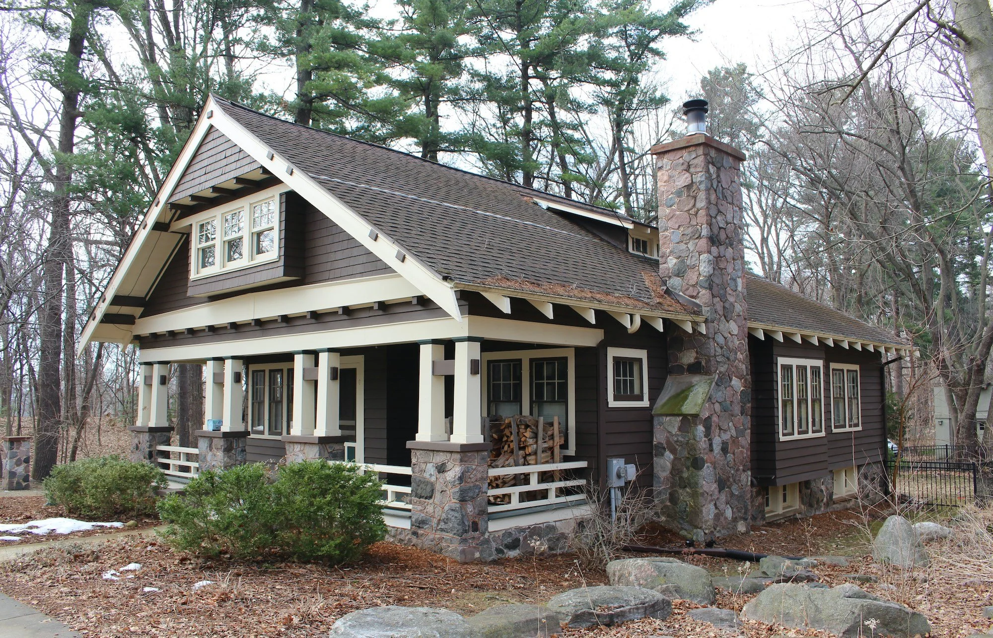 [d] Robert J. Shockley. “The California Bungalow and Its Influence in Madison.” The Journal of Historic Madison. (Historic Madison Inc., Madison, Wis. 1978.) p.4. Shockley notes that, “University of Wisconsin President Charles Van Hise, a geologist, gave advice on rock for the fireplace chimney.”